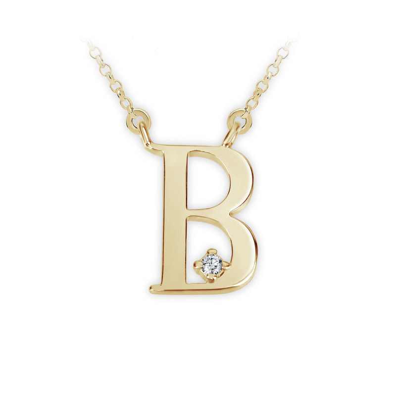 Zlatý dámsky náhrdelník DF 4507, písmeno B, žlté zlato, s diamantom