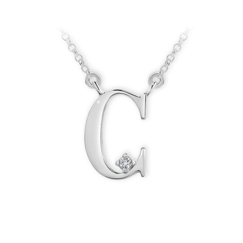 Zlatý dámsky náhrdelník DF 4508, písmeno C, biele zlato, s diamantmi