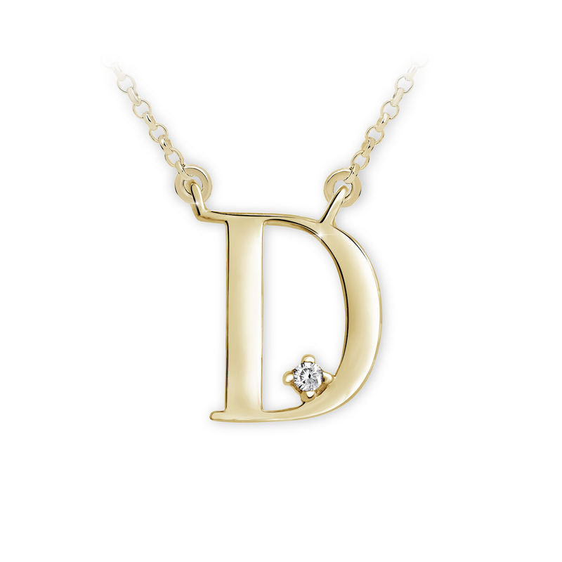 Zlatý dámsky náhrdelník DF 4509, písmeno D, žlté zlato, s diamantom