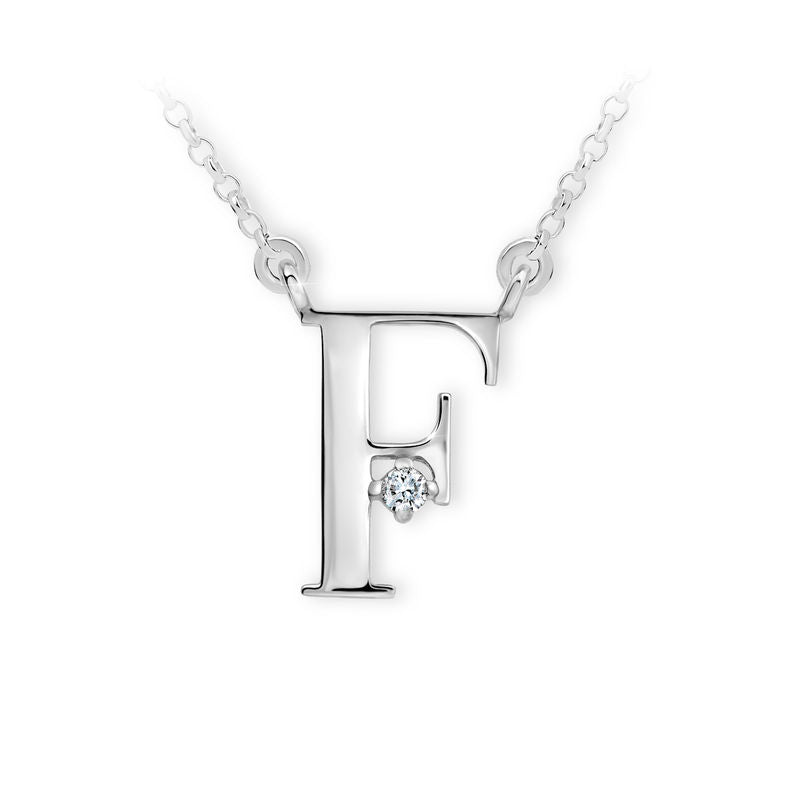 Zlatý dámsky náhrdelník DF 4511, písmeno F, biele zlato, s retiazkou a diamantom