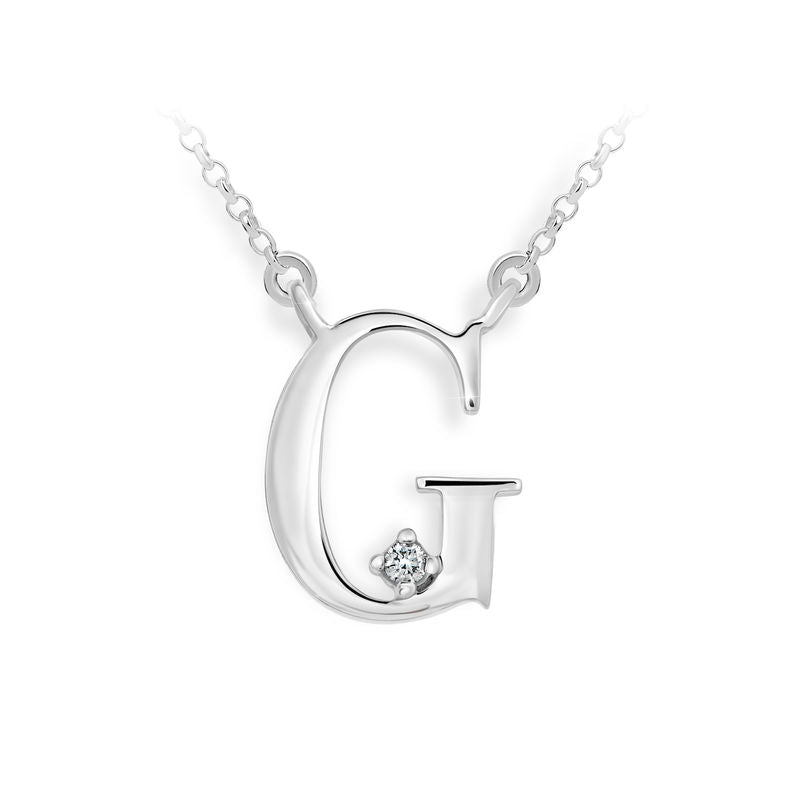 Zlatý dámsky náhrdelník DF 4512, písmeno G, biele zlato, s retiazkou a diamantom