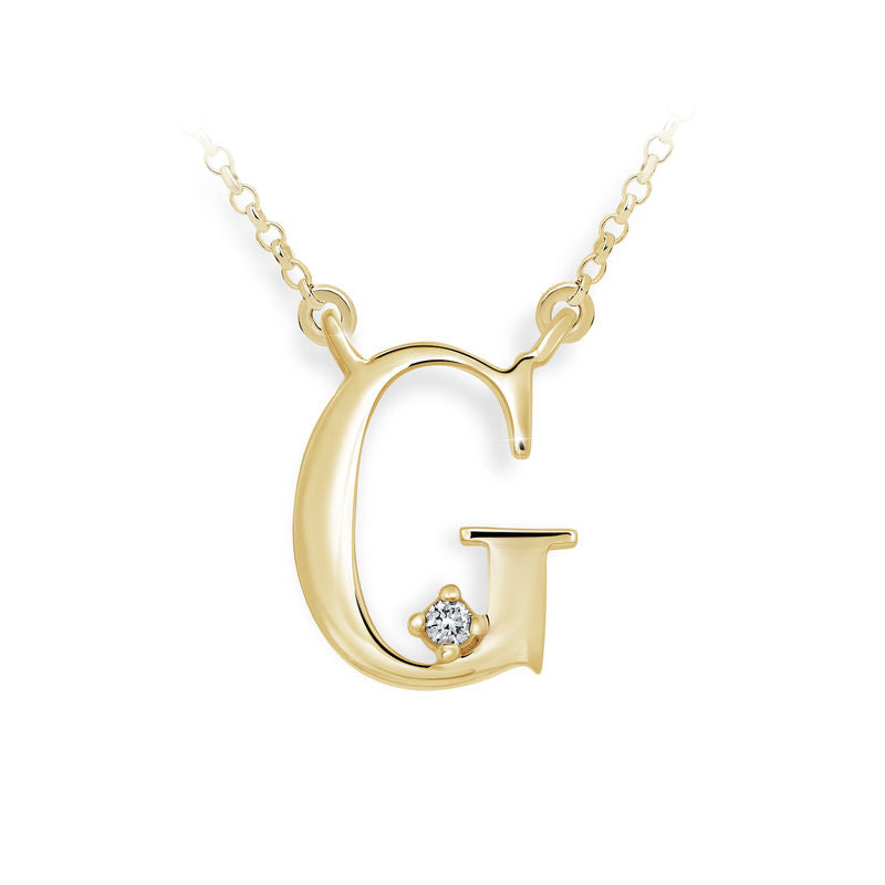 Zlatý dámsky náhrdelník DF 4512, písmeno G, žlté zlato, s retiazkou a diamantom