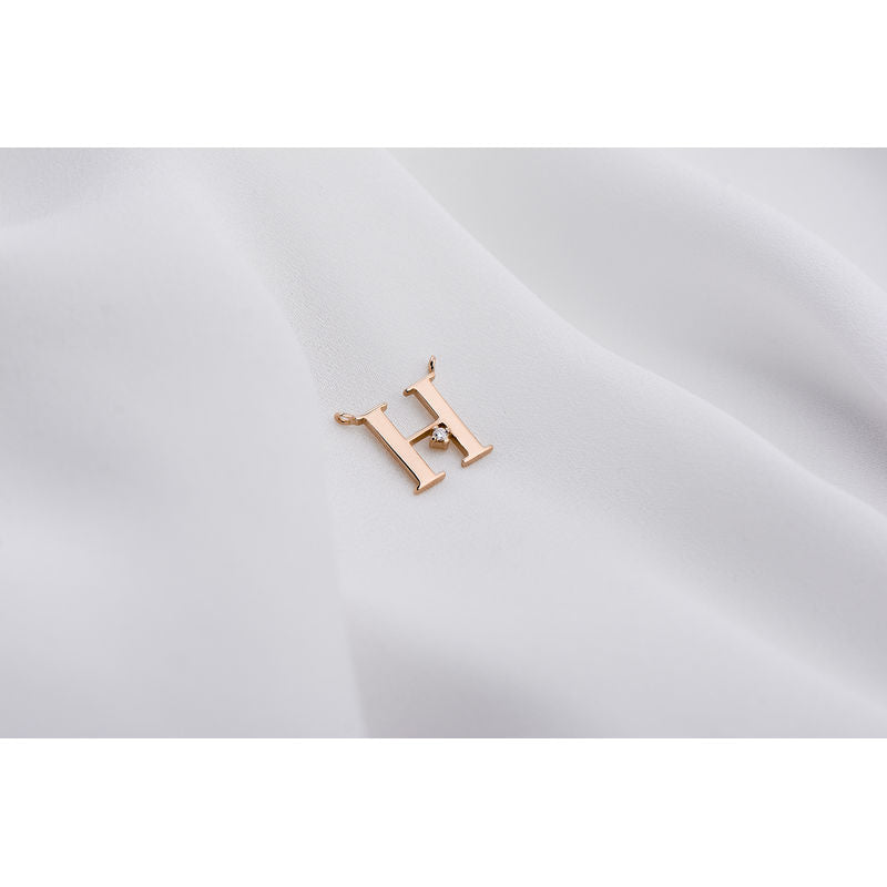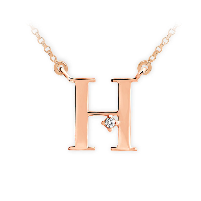 Zlatý dámsky náhrdelník DF 4513, písmeno H, ružové zlato, s retiazkou a diamantom