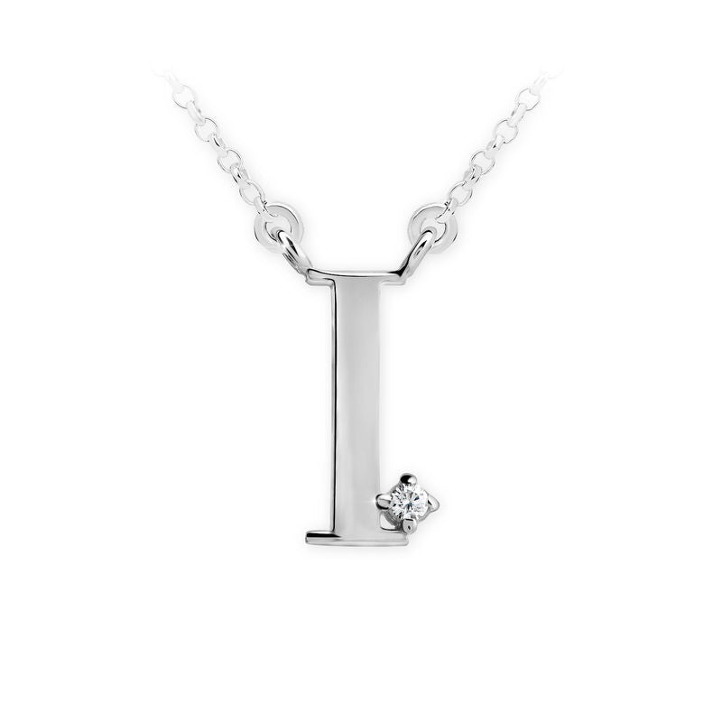 Zlatý dámsky náhrdelník DF 4514, písmeno I, biele zlato, s retiazkou a diamantom