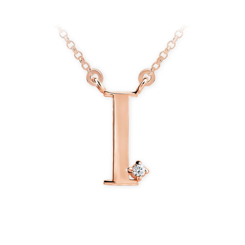 Zlatý dámsky náhrdelník DF 4514, písmeno I, ružové zlato, s retiazkou a diamantom