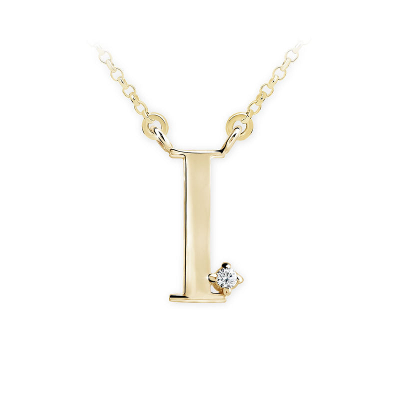 Zlatý dámsky náhrdelník DF 4514, písmeno I, žlté zlato, s retiazkou a diamantom