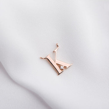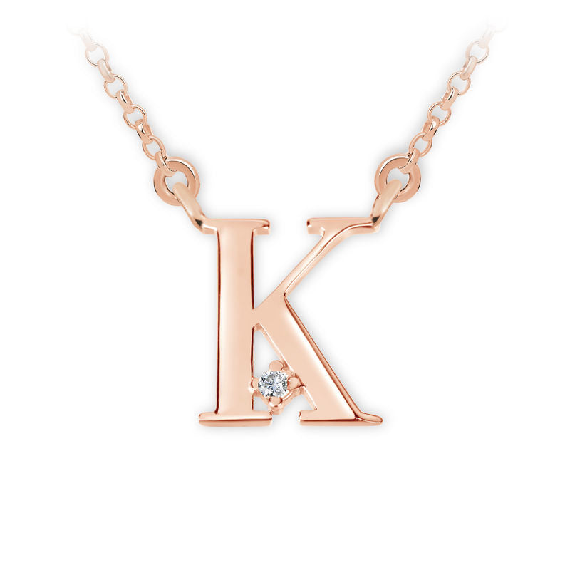 Zlatý dámsky náhrdelník DF 4516, písmeno K, ružové zlato, s retiazkou a diamantom