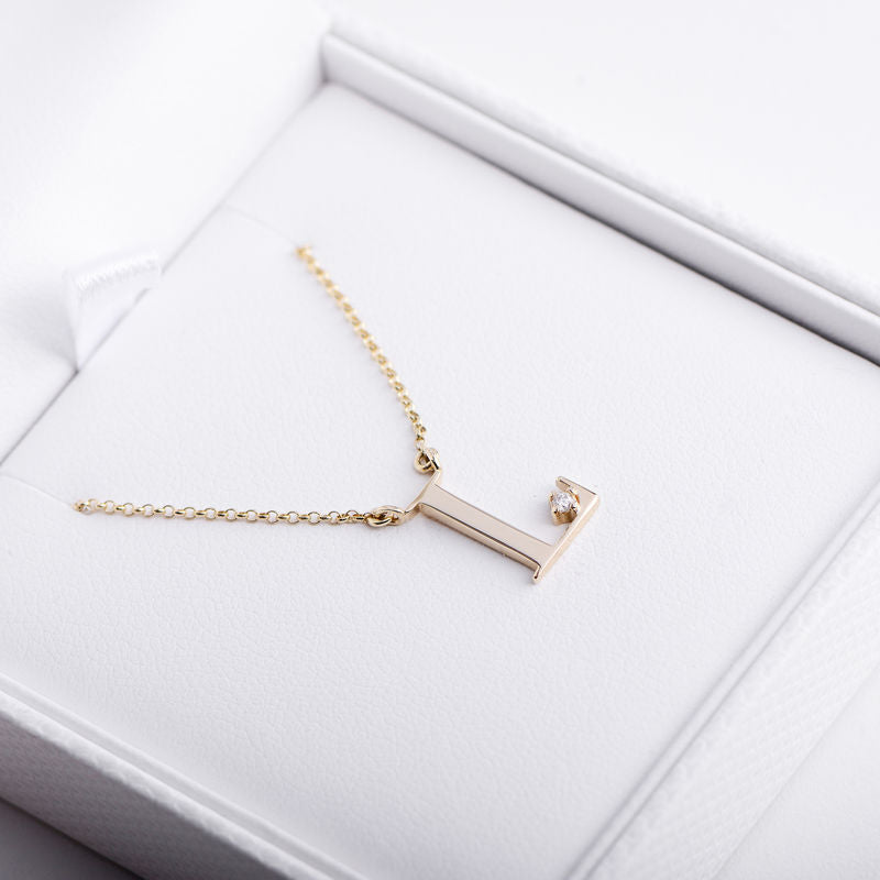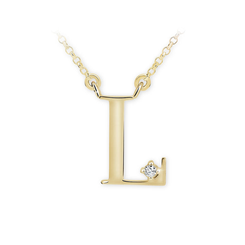 Zlatý dámsky náhrdelník DF 4517, žlté zlato, písmeno L, s retiazkou a diamantom