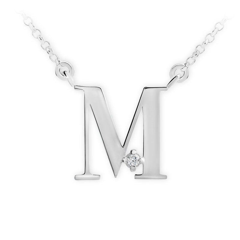 Zlatý dámsky náhrdelník DF 4518, písmeno M, biele zlato, s retiazkou a diamantom