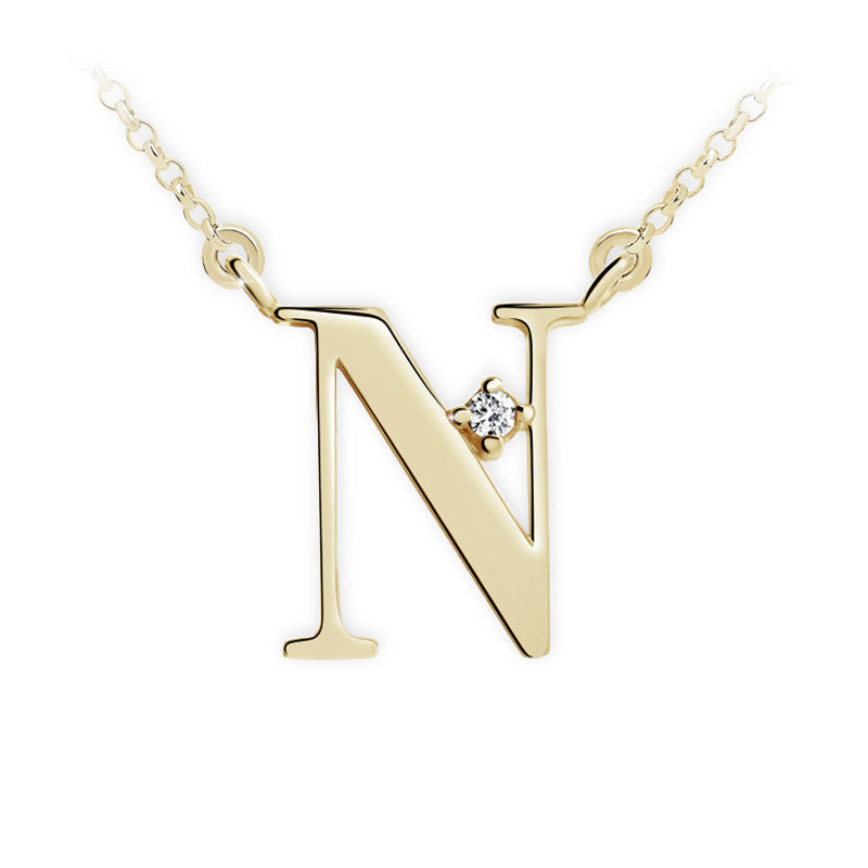 Zlatý dámsky náhrdelník DF 4519, písmeno N, žlté zlato, s retiazkou a diamantom