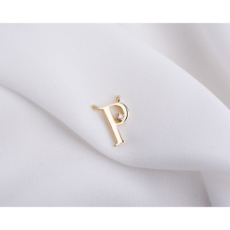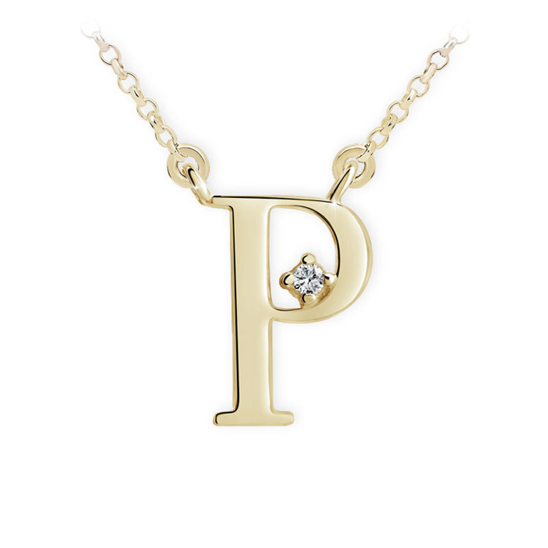 Zlatý dámsky náhrdelník DF 4521, písmeno P, žlté zlato, s retiazkou a diamantom