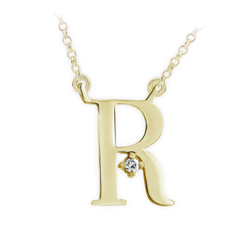 Zlatý dámsky náhrdelník DF 4523, písmeno R, žlté zlato, s retiazkou a diamantom