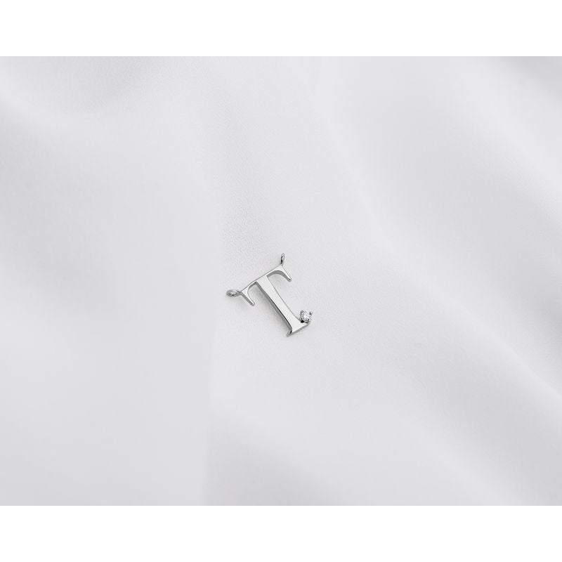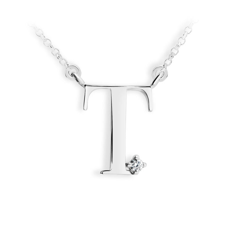 Zlatý dámsky náhrdelník DF 4525, písmeno T, biele zlato, s retiazkou a diamantom