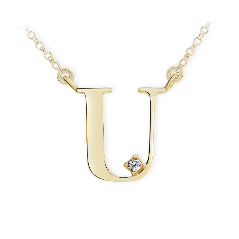 Zlatý dámsky náhrdelník DF 4526, písmeno U, žlté zlato, s retiazkou a diamantom