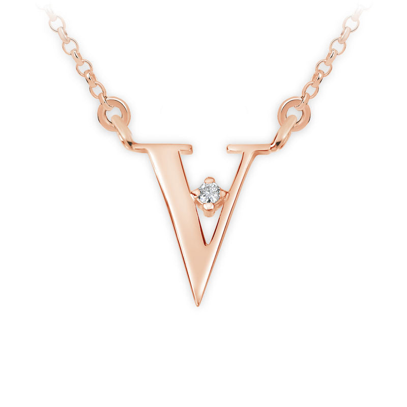 Zlatý dámsky náhrdelník DF 4527, písmeno V, ružové zlato, s retiazkou a diamantom