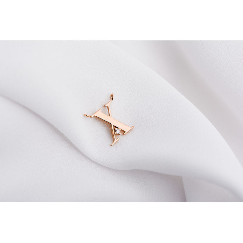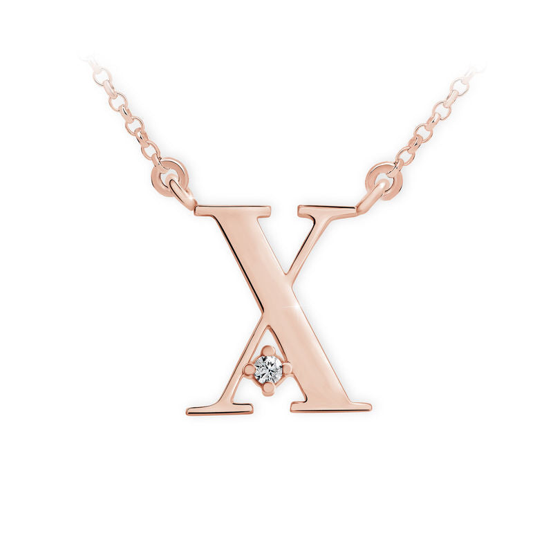 Zlatý dámsky náhrdelník DF 4529, písmeno X, ružové zlato, s retiazkou a diamantom