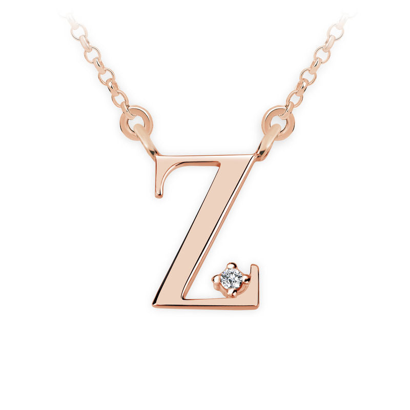 Zlatý dámsky náhrdelník DF 4531, písmeno Z, ružové zlato, s retiazkou a diamantom