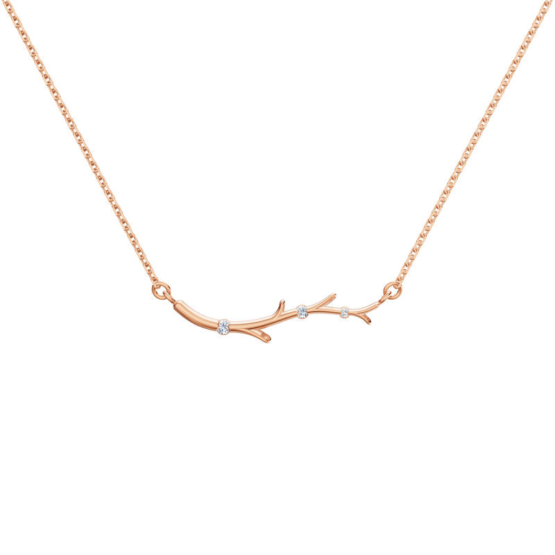 Náhrdelník z růžového 14 karátového zlata zaujme něžným tónem kovu a jemně romantickým vzhledem. Tři diamanty kulatého brusu kvality SI1, barvy G s excelentním brusem o celkové váze 0.029 ct dodávají šperku decentní lesk a luxusní detail. Precizní zpracování a lesklý povrch zvýrazňují krásu kamenů i moderní design. Délka řetízku 43 cm zajišťuje pohodlné nošení a univerzální využití. Šperk je uložen v elegantní dárkové krabičce a doplněn certifikátem pravosti.