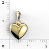 Luxusný prívesok v tvare srdiečka zo žltého 14 karátového zlata zvýraznený krásnym briliantom 0.015 ct okrúhleho brusu. Prívesok má lesklý povrch. Šperk je uložený v luxusnej darčekovej krabičke spolu s certifikátom pravosti.