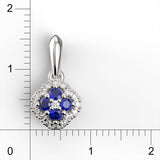 Krásny prívesok z bieleho 14-karátového zlata so 17 briliantmi okrúhleho brusu a 4 zafírmi s hmotnosťou 0,233 ct. Prívesok má lesklý povrch. Šperk sa dodáva v luxusnej darčekovej krabičke spolu s certifikátom pravosti.