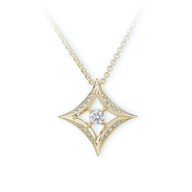 Luxusný prívesok zo žltého 14 karátového zlata ozdobený 21 žiarivými briliantmi okrúhleho brusu o celkovej váhe 0.206 ct. Prívesok má lesklý povrch. Šperk je uložený v luxusnej darčekovej krabičke spolu s certifikátom pravosti.