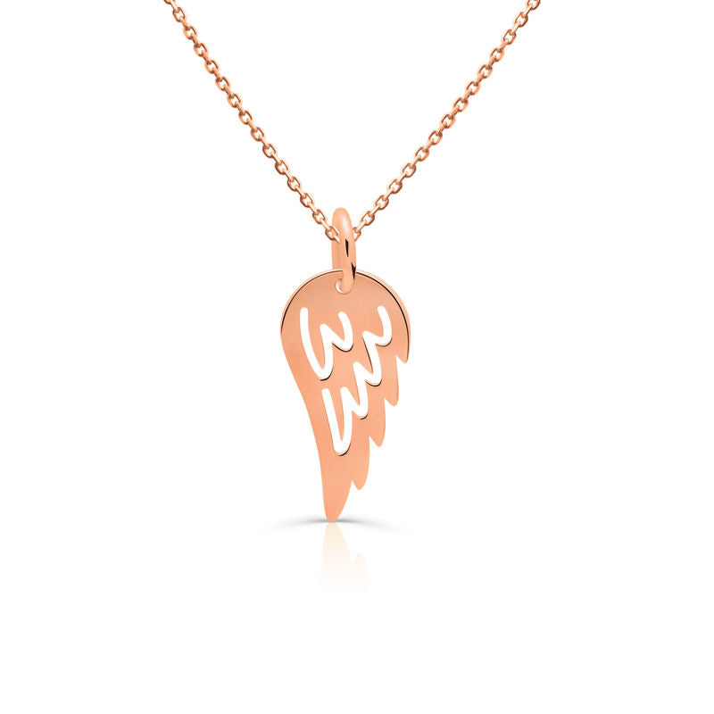 Luxusný celozlatý prívesok KRÍDLO zo 14 karátového zlata. Anjelské krídlo symbolizuje ochranu, bezpečie, nezávislosť, ľahkosť, čistotu, ale aj túžbu po slobode a voľnosť. Prívesok má lesklý povrch. Šperk je uložený v luxusnej darčekovej krabičke.