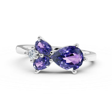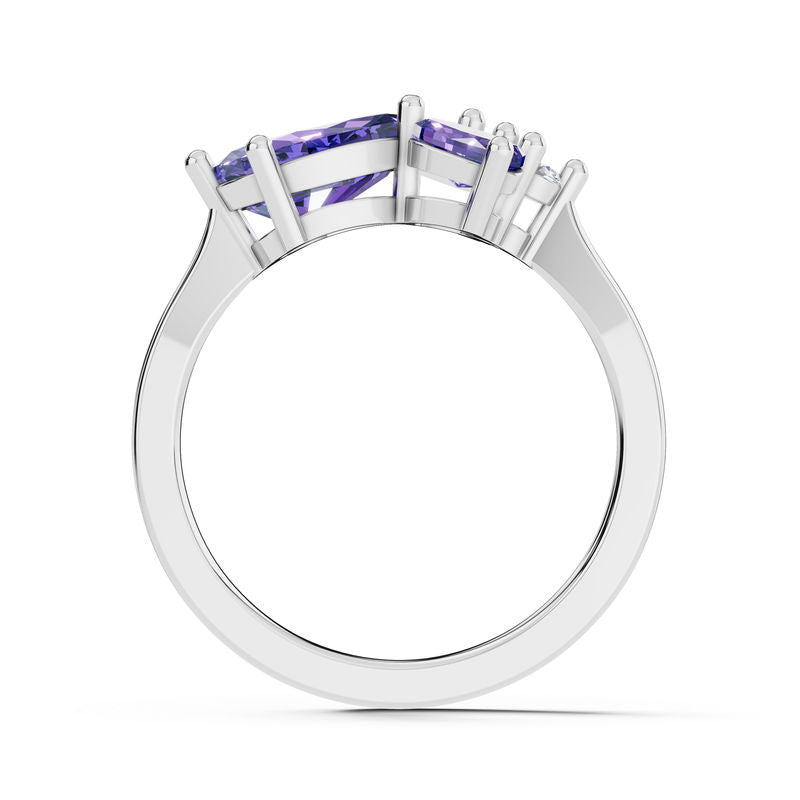 Luxusní a elegantní prsten ze 14 karátového bílého zlata spojuje moderní design s výraznou sofistikovaností. Středové tanzanity oválného a slzovitého brusu zaujmou fascinujícím modro-fialovým odstínem, který prstenu propůjčuje jedinečný a sofistikovaný charakter. Kameny jsou doplněny jemným diamantem kvality SI1, barvy G s excelentním brusem, který šperku dodává třpyt a nádech luxusu. Celková hmotnost kamenů 1.76 ct podtrhuje jeho výjimečný a nadčasový vzhled.