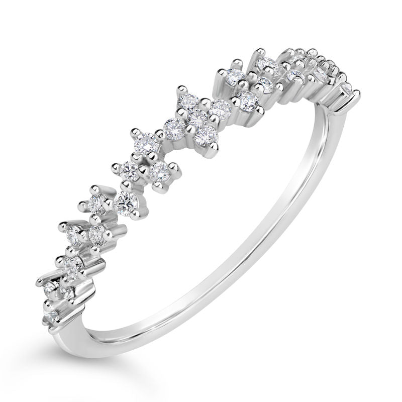 Elegantní dámský prsten z kolekce Danfil Diamonds vyrobený z bílého 14 karátového zlata zvýrazněný 26 brilianty o váze 0.166 ct. Prsten má sněhově bílý lesklý povrch. Šperk je uložen v luxusní dárkové krabičce spolu s certifikátem pravosti.