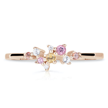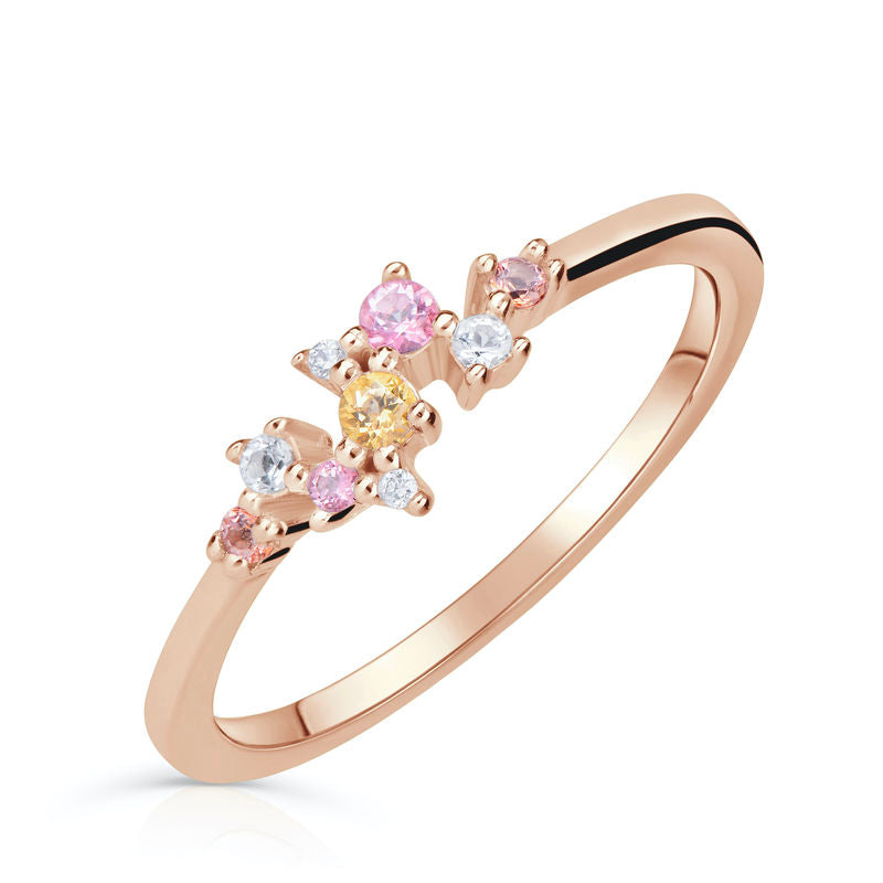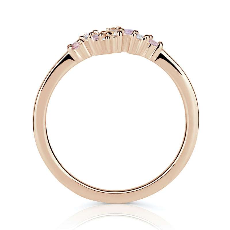 Zlatý dámsky prsteň DF 5036 z ružového zlata, farebné kamene