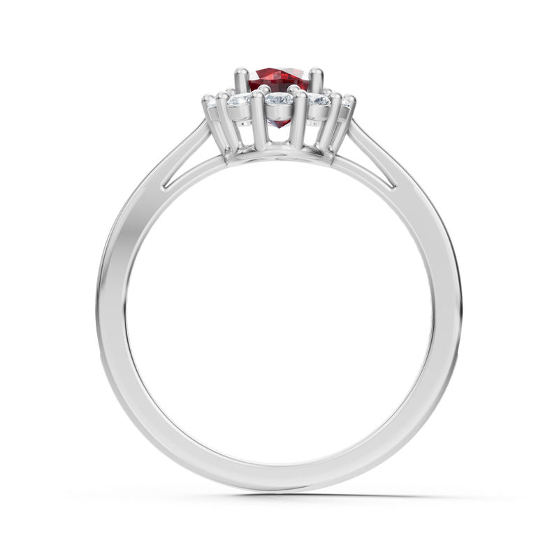 Zlatý dámský prsten DF 5636 z bílého zlata, rubín s diamanty