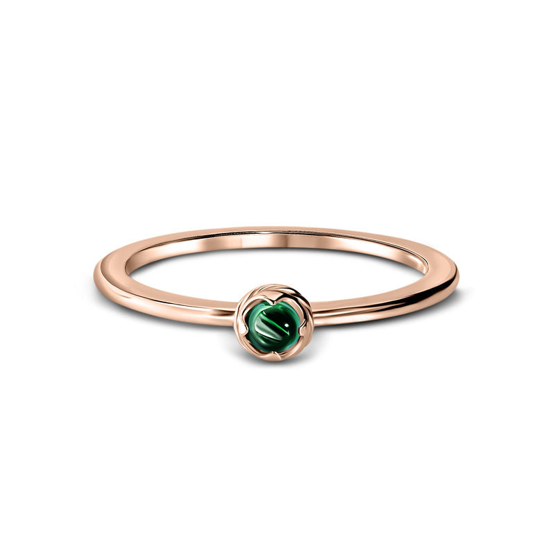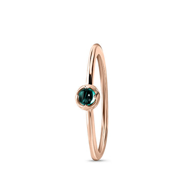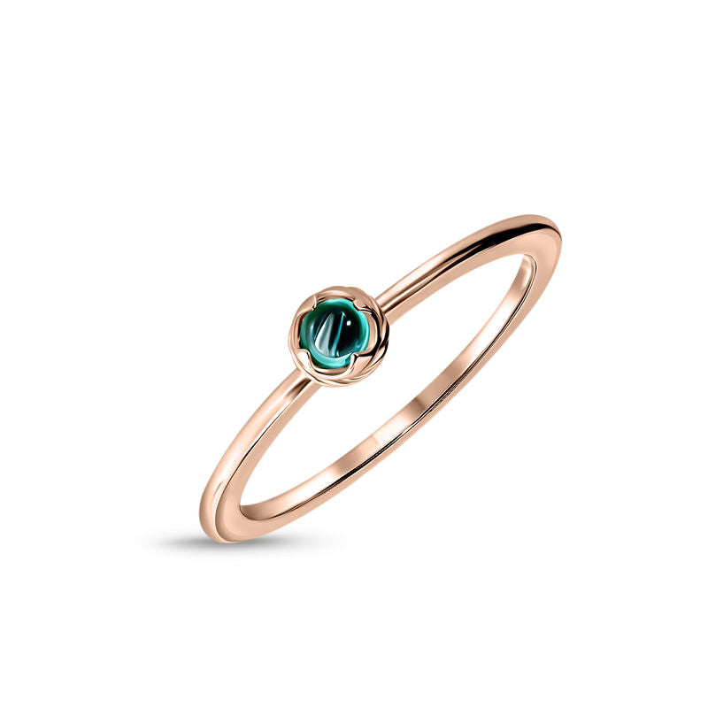 Zlatý dámský prsten DF 5641 z růžového zlata, zelený turmalín mugle