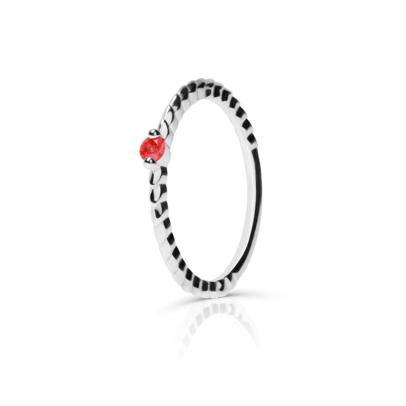 Zlatý dámský prsten DF 5644 z bílého zlata, červený rubín