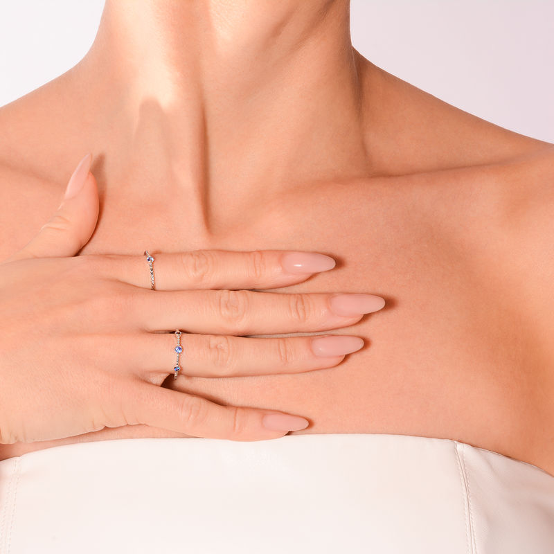 Elegancia a zmyselnosť. Tri žiarivé zafíry zasadené do originálnej kruhovej obrúčky, sú dominantou tohto prsteňa. Šperk je uložený v luxusnej krabičke spolu s certifikátom pravosti.