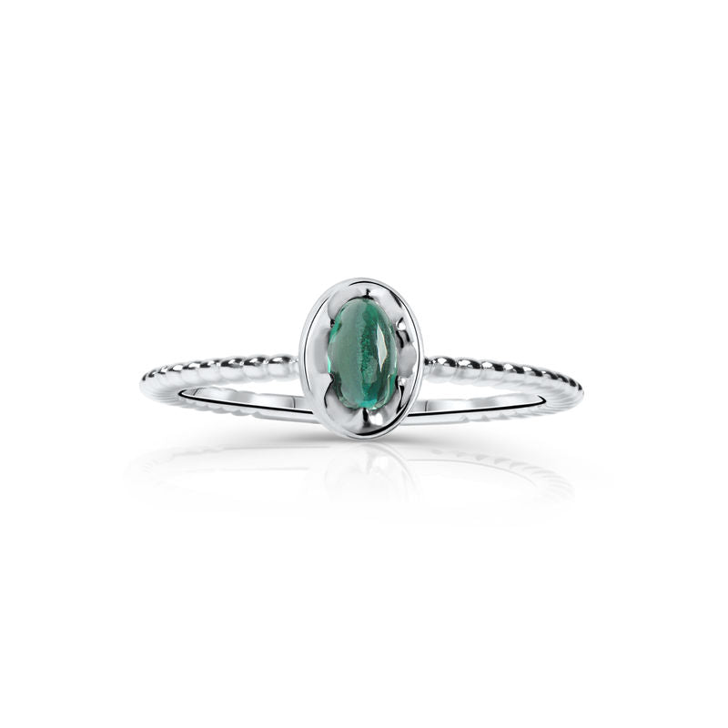 Zlatý dámsky prsteň DF 5654 z bieleho zlata, modrý turmalín