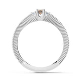 Nadčasový a elegantní prsten ze 14 karátového bílého zlata zaujme svou vytříbenou krásou a dokonale vyváženým designem. Dominantou šperku je přírodní zirkon kulatého brusu (Nature Zircon Round), který je elegantně doplněn dvěma postranními diamanty v kvalitě SI1, barva G a excelentní brus. Celková hmotnost kamenů je 0.190 ct, což prstenu dodává jemný a luxusní třpyt. Precizní osazení zvýrazňuje přirozený lesk všech drahokamů a podtrhuje sofistikovaný charakter šperku. Lesklý povrch a čisté, jemně tvarované linie umocňují jeho eleganci, díky čemuž působí lehce, moderně a nadčasově. Prsten je uložen v luxusní dárkové krabičce a doplněn certifikátem pravosti. Je ideální volbou pro ženy, které hledají výjimečný šperk vyzařující noblesu, styl a osobitý půvab.