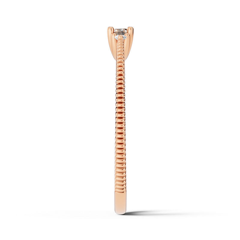 Nadčasový a elegantní prsten ze 14 karátového růžového zlata zaujme svou vytříbenou krásou a dokonale vyváženým designem. Dominantou šperku je přírodní zirkon kulatého brusu (Nature Zircon Round), který je elegantně doplněn dvěma postranními diamanty v kvalitě SI1, barva G a excelentní brus. Celková hmotnost kamenů je 0.190 ct, což prstenu dodává jemný a luxusní třpyt. Precizní osazení zvýrazňuje přirozený lesk všech drahokamů a podtrhuje sofistikovaný charakter šperku. Lesklý povrch a čisté, jemně tvarované linie umocňují jeho eleganci, díky čemuž působí lehce, moderně a nadčasově. Prsten je uložen v luxusní dárkové krabičce a doplněn certifikátem pravosti. Je ideální volbou pro ženy, které hledají výjimečný šperk vyzařující noblesu, styl a osobitý půvab.