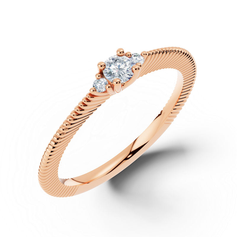 Nadčasový a elegantní prsten ze 14 karátového růžového zlata zaujme svou vytříbenou krásou a dokonale vyváženým designem. Dominantou šperku jsou diamanty v kvalitě SI1, barva G a excelentní brus. Celková hmotnost kamenů je 0.145 ct, což prstenu dodává jemný, přesto výrazný třpyt a luxusní charakter. Precizní osazení zvýrazňuje přirozený lesk všech drahokamů a podtrhuje sofistikovaný vzhled šperku. Lesklý povrch a čisté, jemně tvarované linie prstenu umocňují jeho eleganci, díky čemuž působí lehce, nadčasově a harmonicky. Prsten je uložen v luxusní dárkové krabičce a doplněn certifikátem pravosti. Je ideální volbou pro ženy, které hledají jedinečný šperk spojující noblesu, eleganci a osobitý půvab.