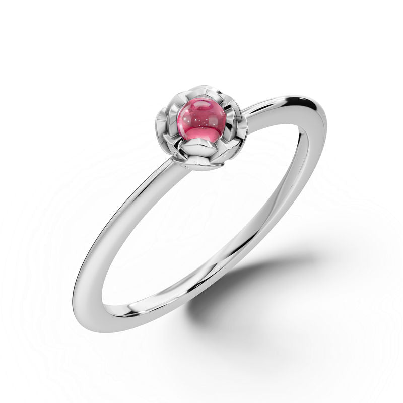 Zlatý dámský prsten DF 5680 z bílého zlata, růžový turmalín mugle