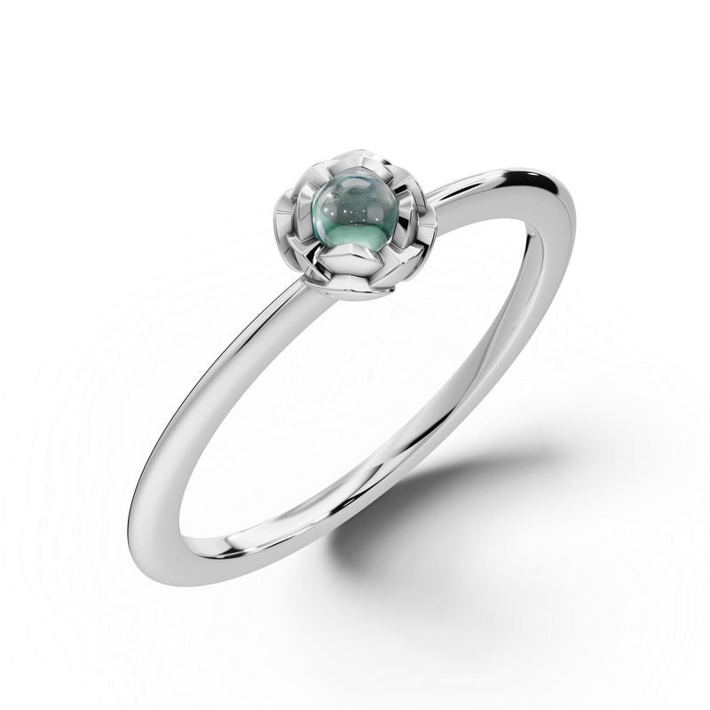 Zlatý dámský prsten DF 5680 z bílého zlata, zelený turmalín mugle