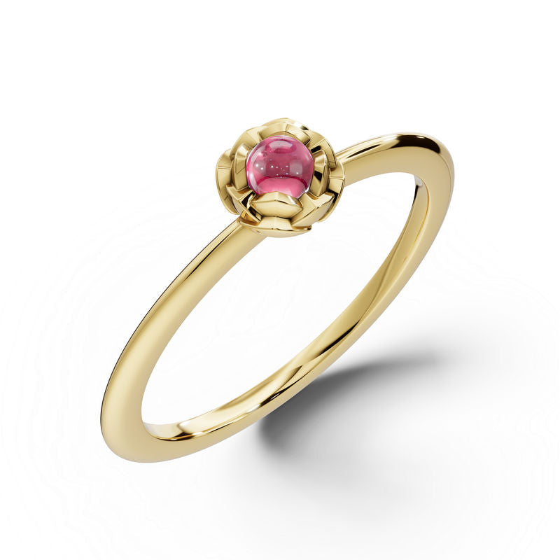Zlatý dámský prsten DF 5680 ze žlutého zlata, růžový turmalín mugle