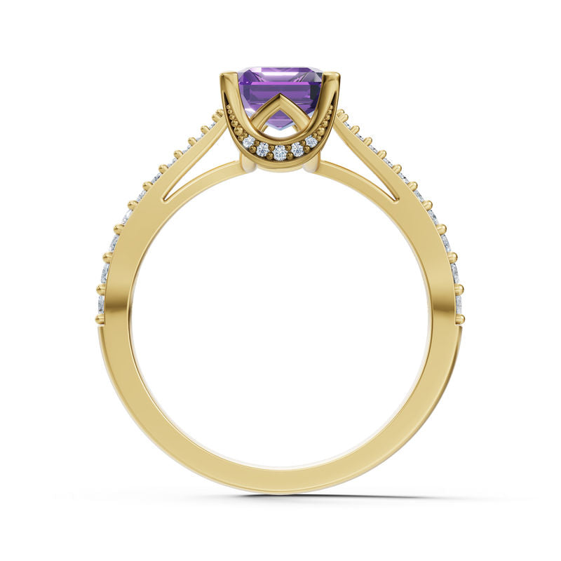 Zlatý dámský prsten DF 5874 ze žlutého zlata, ametyst s diamanty