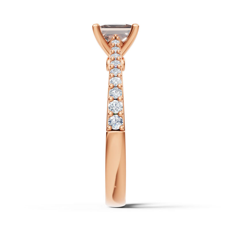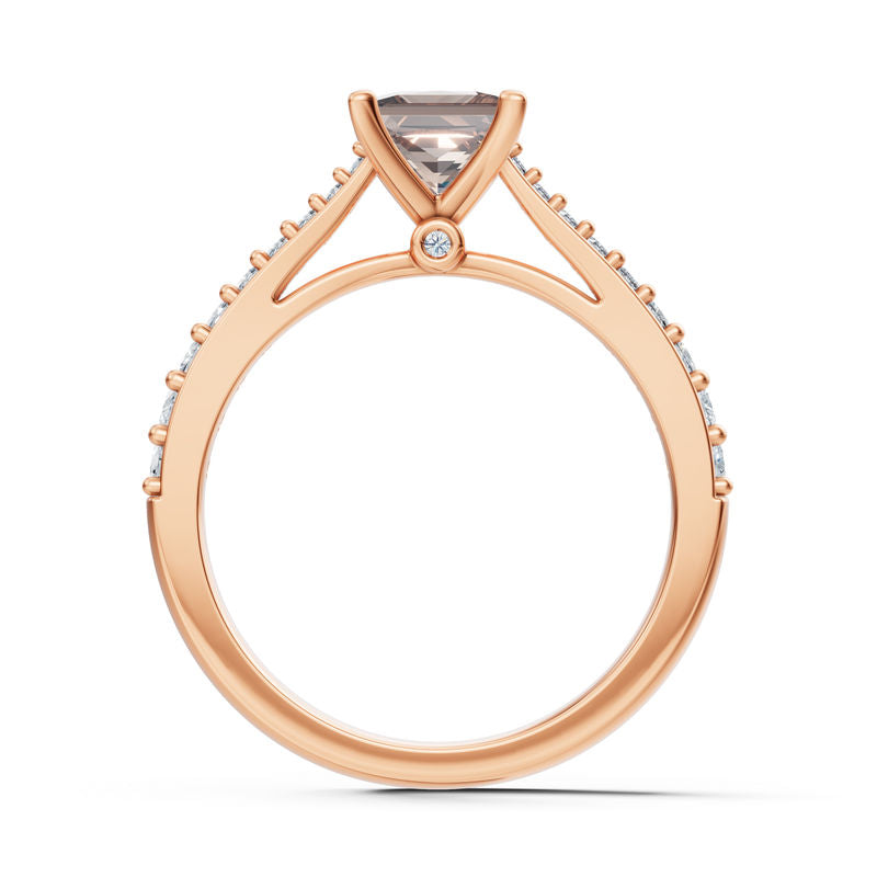 Elegantní a současně výrazný prsten ze 14 karátového růžového zlata zaujme originální kombinací teplého odstínu zlata a středové záhnědy v princess brusu. Tu doplňují jemné postranní diamanty kvality SI1, barvy G s excelentním brusem, které šperku dodávají sofistikovaný třpyt a moderní luxus. Celková hmotnost kamenů 0.956 ct podtrhuje jeho jemnost a nadčasovou eleganci. Lesklý povrch zvýrazňuje čisté linie designu a nechává vyniknout krásu drahokamů i preciznímu zpracování. Prsten je uložen v luxusní dárkové krabičce a doplněn certifikátem pravosti - perfektní volba pro ženy, které milují stylový detail a chtějí se odlišit s přirozenou lehkostí.