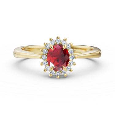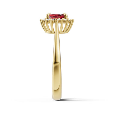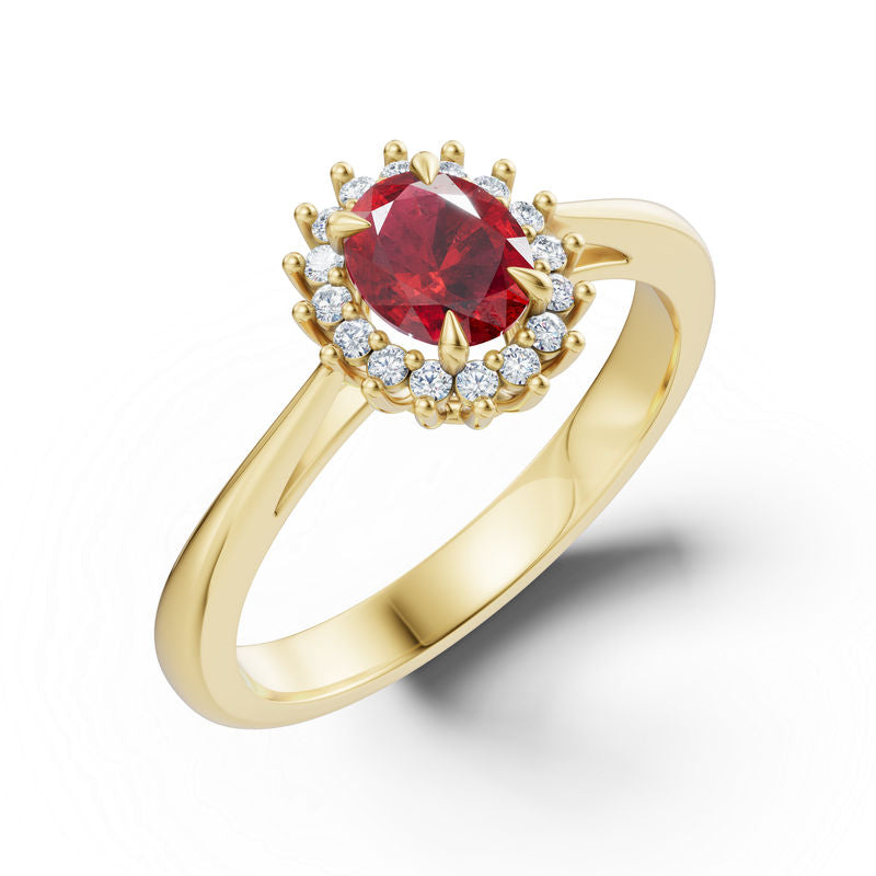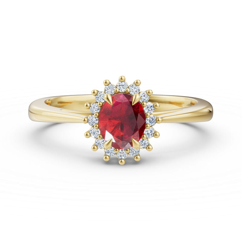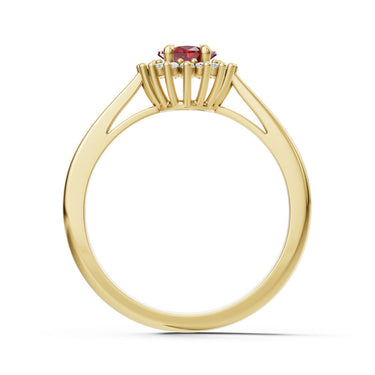 Zlatý dámský prsten DF 5902 ze žlutého zlata, rubín s diamanty