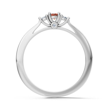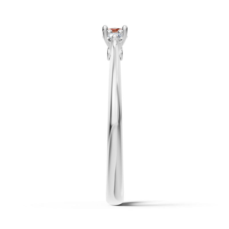 Luxusní a elegantní prsten ze 14 karátového bílého zlata spojuje moderní design s jemnou sofistikovaností. Středový oranžový safír kulatého round brusu zaujme teplým, živým odstínem, který dodává prstenu originální a výrazný charakter. Safír je doplněn jemnými postranními diamanty kvality SI1, barvy G s excelentním brusem, které šperku propůjčují třpyt a sofistikovaný luxus. Celková hmotnost kamenů 0.208 ct podtrhuje jeho nadčasovou eleganci a výjimečný vzhled.