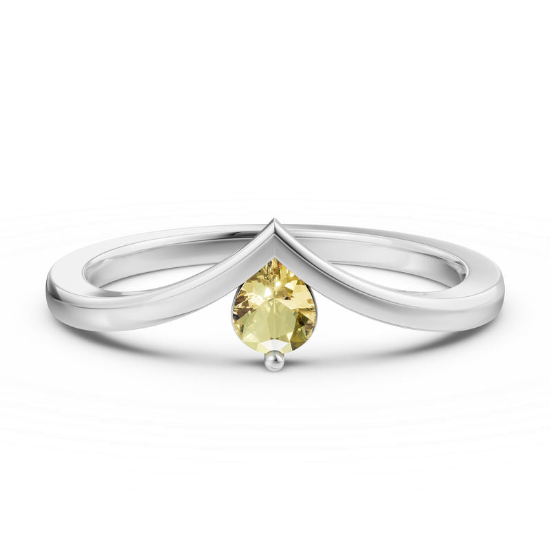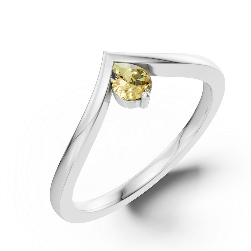 Nadčasový a elegantní prsten ze 14 karátového bílého zlata spojuje moderní design s jemnou sofistikovaností. Dominantou šperku je zářivý žlutý safír v pear brusu o celkové váze 0.280 ct, který dodává prstenu výrazný teplý třpyt a luxusní charakter. Lesklý povrch a čisté linie designu podtrhují precizní zpracování a krásu drahokamu, díky čemuž prsten působí lehce a elegantně. Uložen v luxusní dárkové krabičce a doplněn certifikátem pravosti, je perfektní volbou pro ženy, které chtějí vyjádřit svůj styl s jemným, sofistikovaným šarmem.