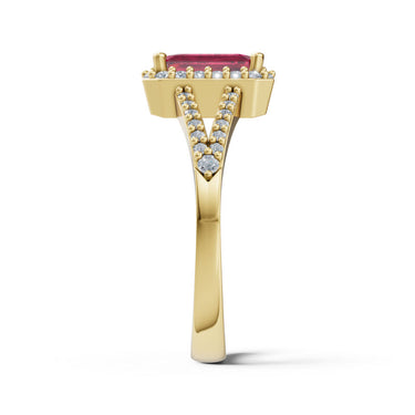 Zlatý dámský prsten DF 6152 ze žlutého zlata, rubín s diamanty