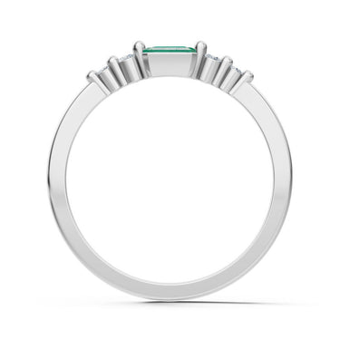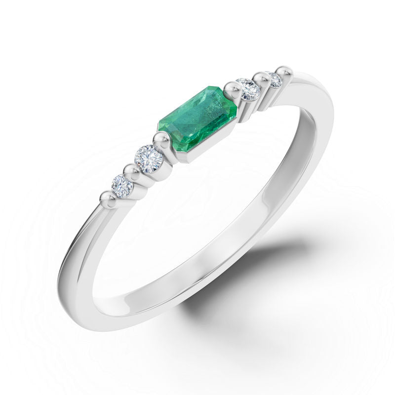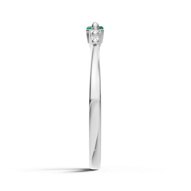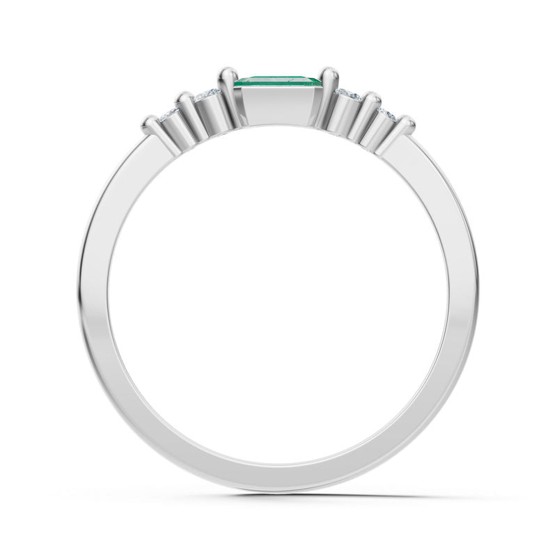 Elegantní a nadčasový prsten ze 14 karátového bílého zlata spojuje moderní design s klasickou sofistikovaností. Středový smaragd ve smaragdovém brusu zaujme intenzivní zelenou barvou a je doplněn jemnými postranními diamanty kvality SI1, barvy G s excelentním brusem, které dodávají šperku třpyt a luxusní charakter. Celková hmotnost kamenů 0.166 ct podtrhuje jeho výjimečnost a nadčasovou eleganci. Lesklý povrch a čisté linie designu zvýrazňují precizní zpracování a krásu drahokamů, díky čemuž prsten působí lehce, elegantně a sofistikovaně. Uložen v luxusní dárkové krabičce a doplněn certifikátem pravosti, je perfektním doplňkem pro ženy, které chtějí vyniknout stylově a s jemným, nadčasovým šarmem.