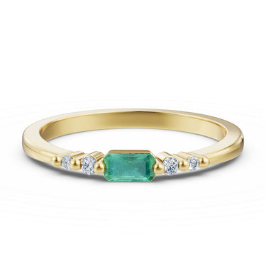 Zlatý dámský prsten DF 6202 ze žlutého zlata, smaragd s diamanty