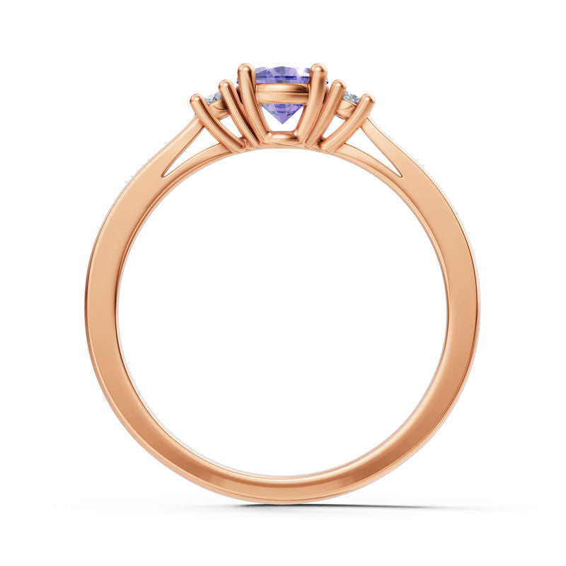 Nadčasový a elegantní prsten z 14 karátového růžového zlata spojuje moderní design s jemnou sofistikovaností. Středový tanzanit kulatého round brusu zaujme svým jedinečným odstínem a je doplněn jemnými postranními diamanty kvality SI1, barvy G s excelentním brusem, které šperku dodávají třpyt a luxusní charakter. Celková hmotnost kamenů 0.464 ct podtrhuje jeho výjimečnost a nadčasovou eleganci. Lesklý povrch a čisté linie designu zvýrazňují precizní zpracování a krásu drahokamů, díky čemuž prsten působí lehce, elegantně a sofistikovaně. Uložen v luxusní dárkové krabičce a doplněn certifikátem pravosti, je perfektním doplňkem pro ženy, které chtějí vyniknout stylově a s jemným, nadčasovým šarmem.