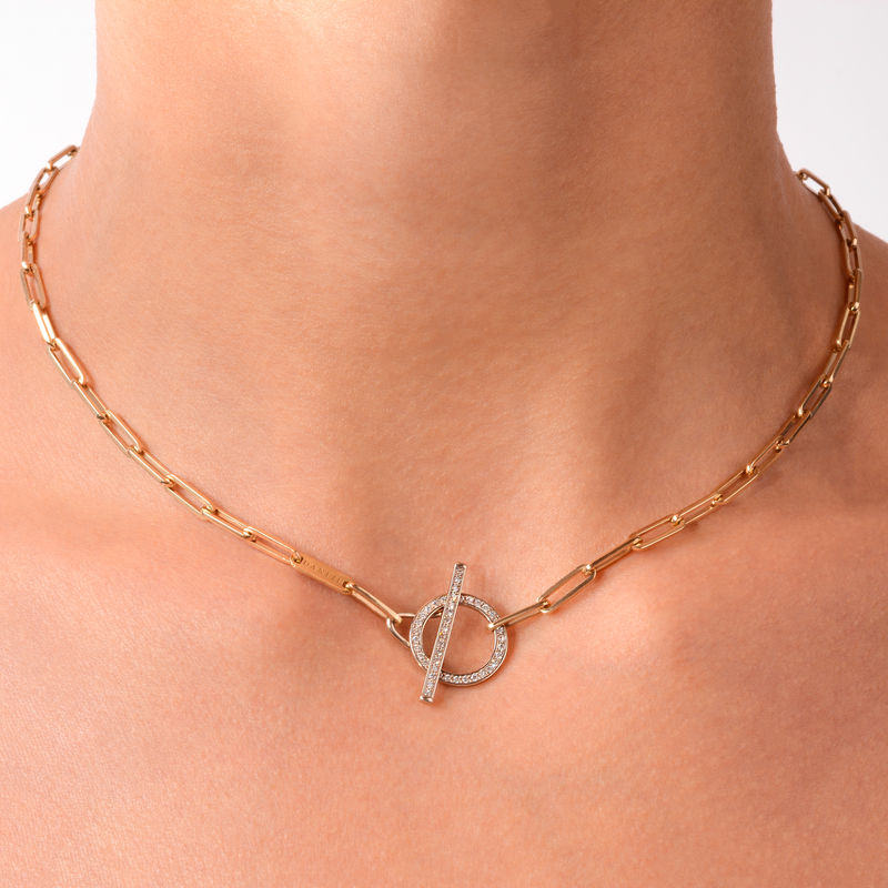 Zlatý náhrdelník DF 5849, kombinácie ružového a bielého zlata, s briliantmi